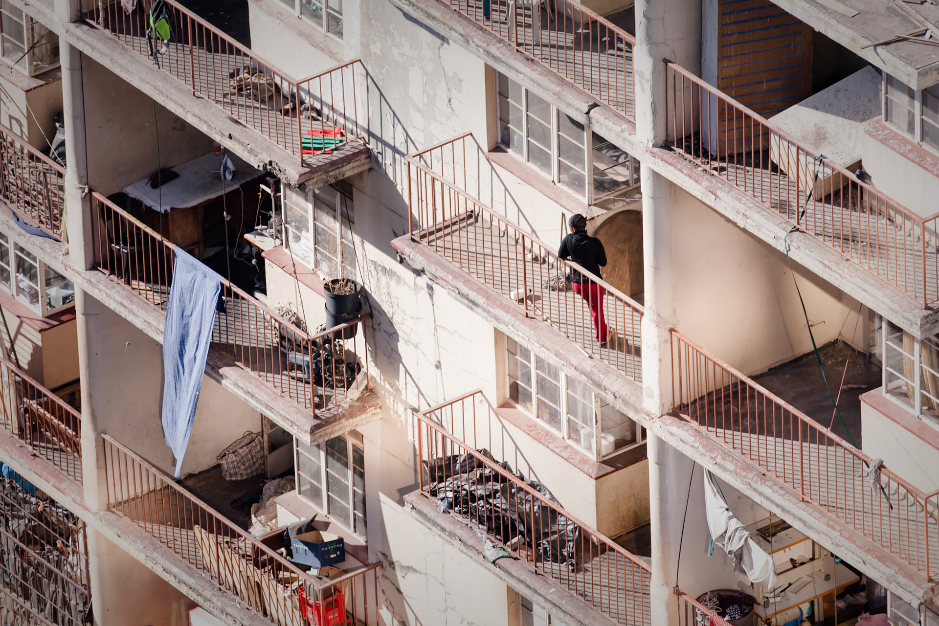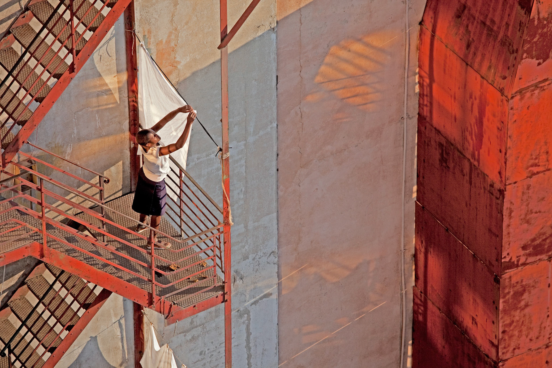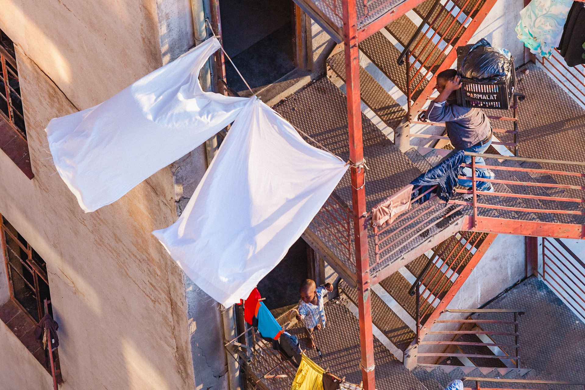 Hello Alastair. I chose your series to review your series, titled, “Stad / City : To Let / For Sale” because I find it visually interesting. I have taken some time to study your photos looking for visual clues about what you are trying to achieve in your photography practice. You provide a brief statement that says, “At odds with the perception of industrial Johannesburg, is the notion of Johannesburg as home. Days for rest, laundry, worship, being human reveal a rhythm and a ritual that becomes community. I hope these images of Johannesburg convey and engage both the reality of social context whilst providing a place for the world of your imagination.” This statement makes me want to learn more! Though I can see in your photos where your inspiration comes from. Based on what I see, I think you composed your images to create imaginative narrative experiences for the viewer. It definitely appears that you are working on making photos in a unique, artistic, and narrative way, where each photo tells a story about the geometric and very human scenes in the photos.